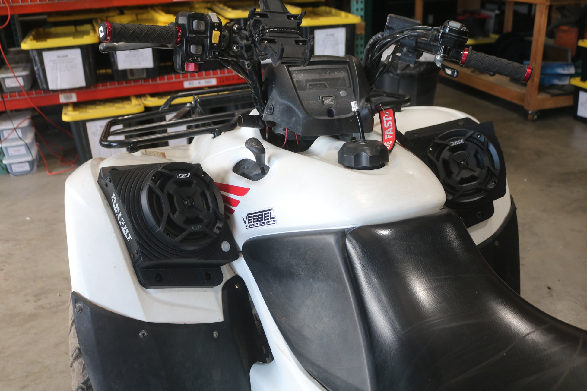 Enhance your outdoor adventures with crystal-clear sound and reliable durability. Our Bluetooth, plug and play, waterproof speaker kit is designed for maximum performance and convenience on your 2007 to 2013 Honda FourTrax Rancher TRX420.