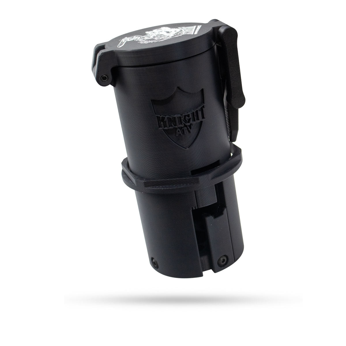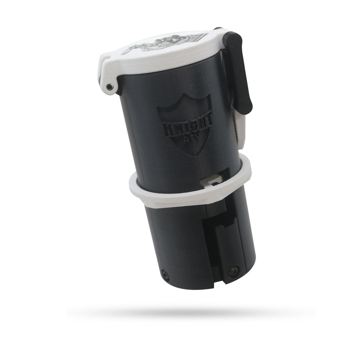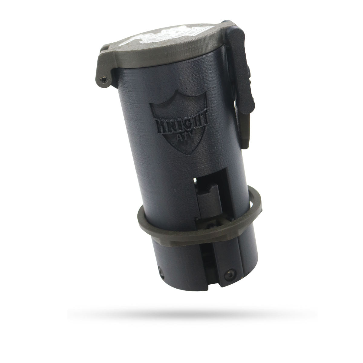 The Knight Shield is our new innovative drink holder and mount made from industrial strength ASA plastic material. The Knight Shield fits 12 oz standard and/or tall and/or slim cans, and even 16oz size sized cans and water bottles. Adjust the height of your Knight Shield to the perfect size with our height adjuster disk.