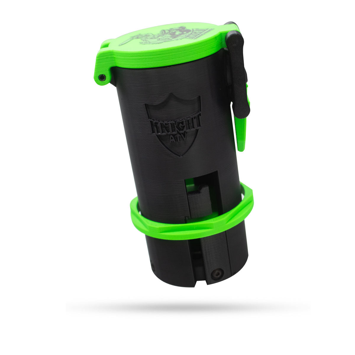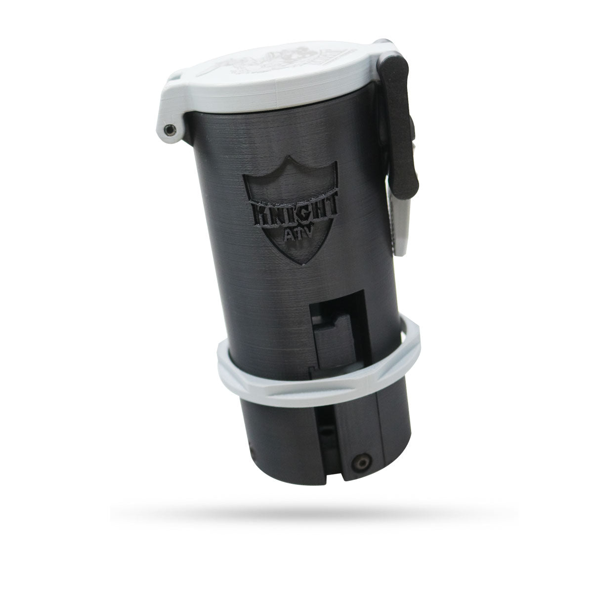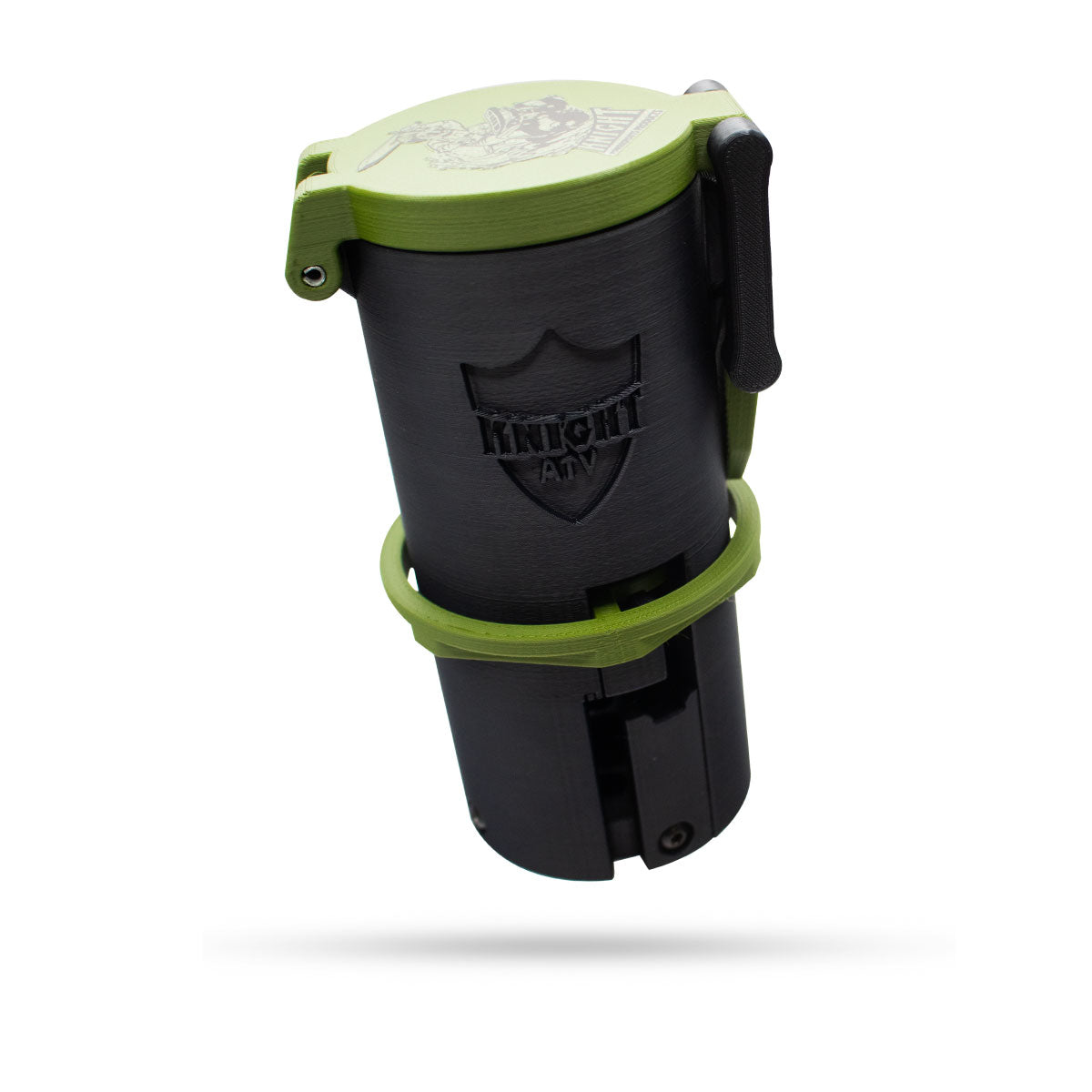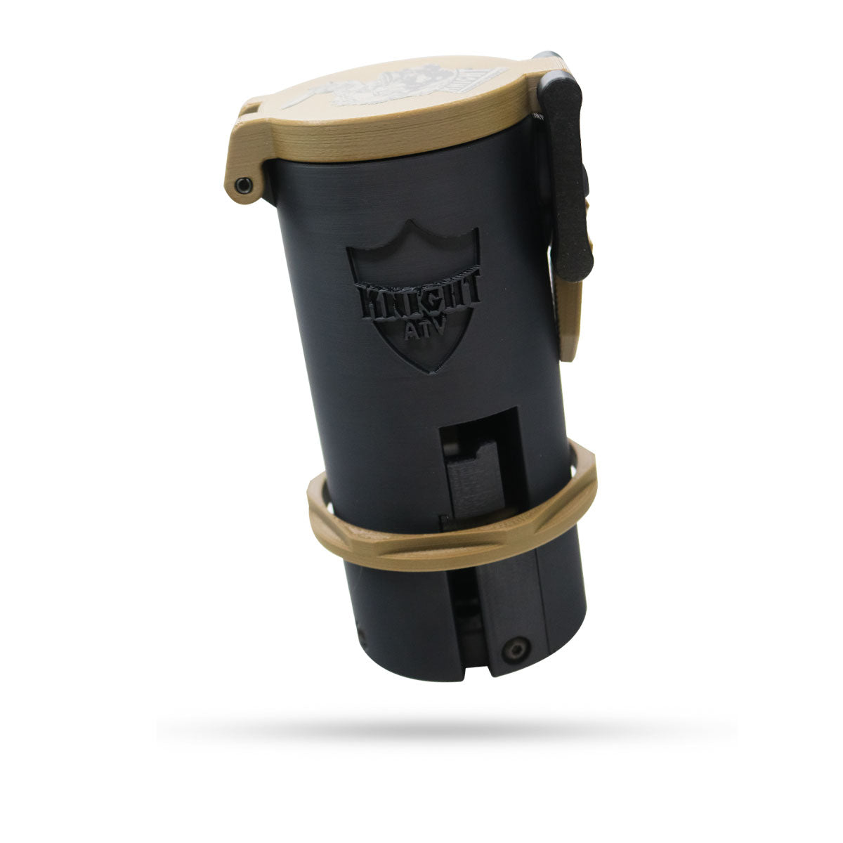 The Knight Shield is our new innovative drink holder and mount made from industrial strength ASA plastic material. The Knight Shield fits 12 oz standard and/or tall and/or slim cans, and even 16oz size sized cans and water bottles. Adjust the height of your Knight Shield to the perfect size with our height adjuster disk.